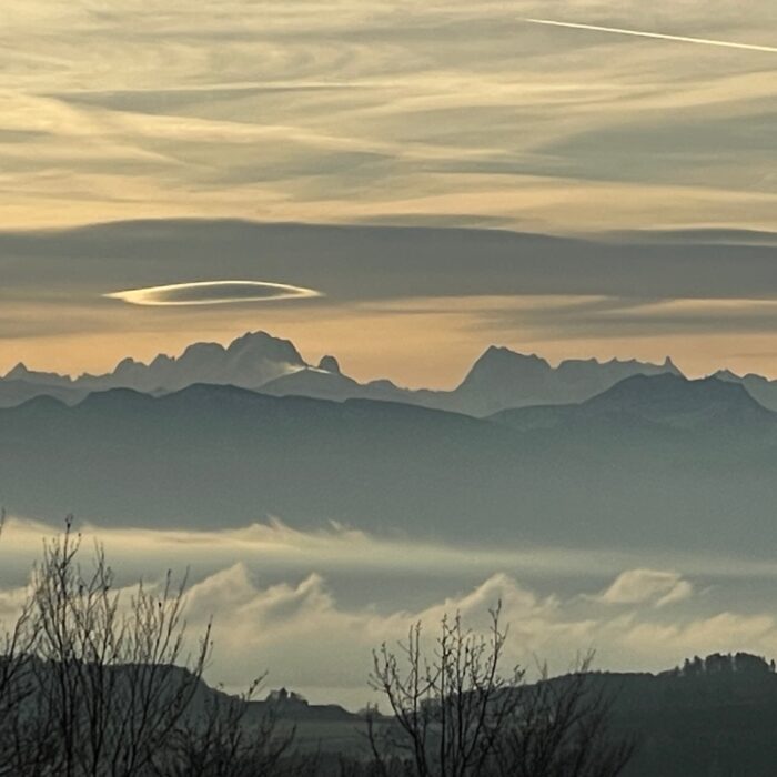 Michael Dixon looked out in the morning from his home in Saint-George, Vaud, Switzerland to see range after range of mountains and clouds so layered it was hard to tell land from sky. John Gault (Member 65,544) shared this spotting with us…