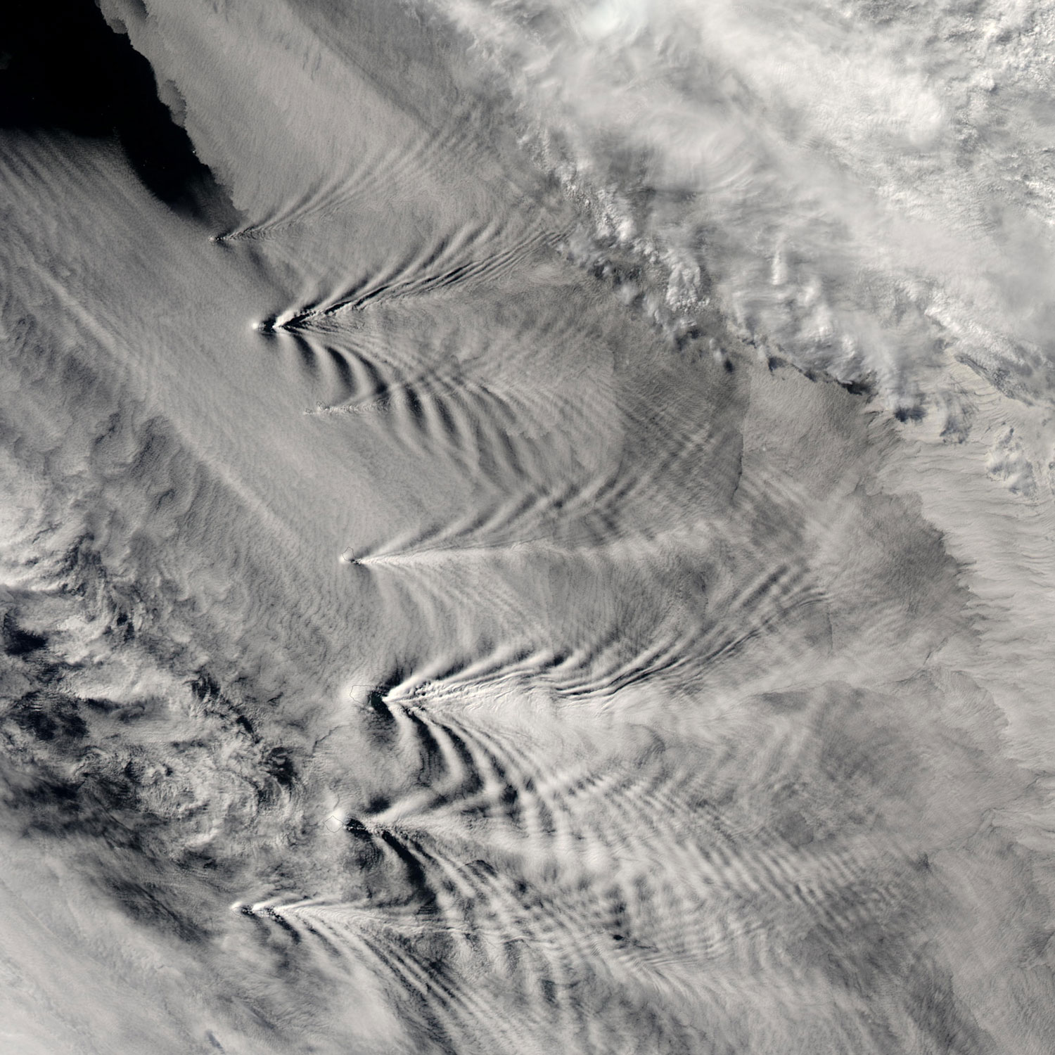These broad undulations, viewed in from instruments on NASA’s Aqua satellite, extended over the remote Southern Ocean like waves in the wake of a flotilla. But these were not waves on the ocean. They formed above it, in marine Stratocumulu…