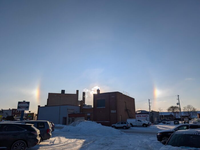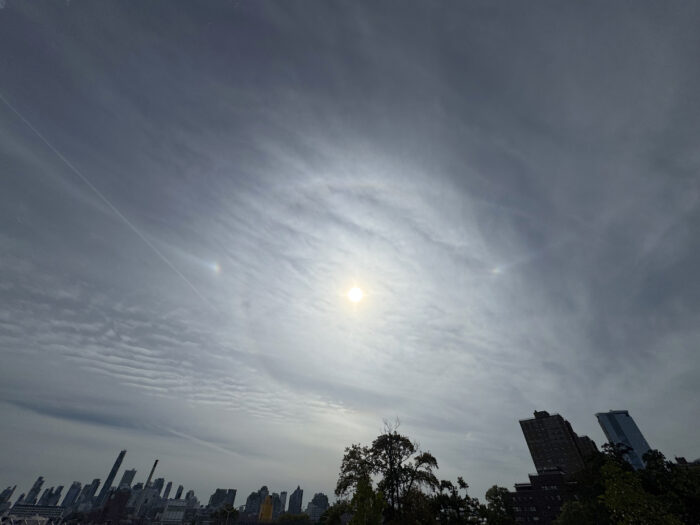 Though it’s worth two stars, a 22-degree halo is not worth screwing up your eyesight for, so take especial care never to stare directly at the sun. Be sure to photograph from the shade of a tree, lamppost or building in order to block out the sun itself, and reveal the part of the sky showing the halo.