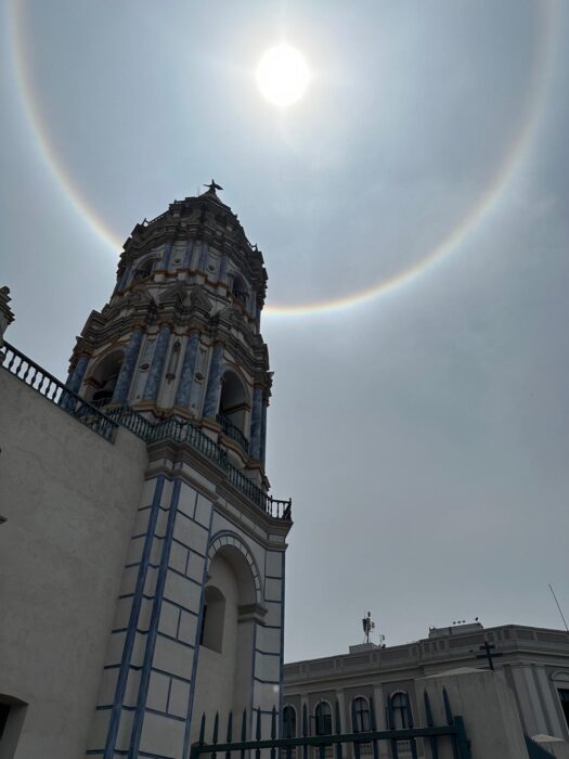 CloudSpotters observing a 22-degree halo for the first time will be surprised at how much larger it appears compared with photographs. This can present challenges when trying to photograph one on your phone. The distance from sun or moon to the edge of the ring is equivalent to the outstretched span of a hand held up at arm’s length.