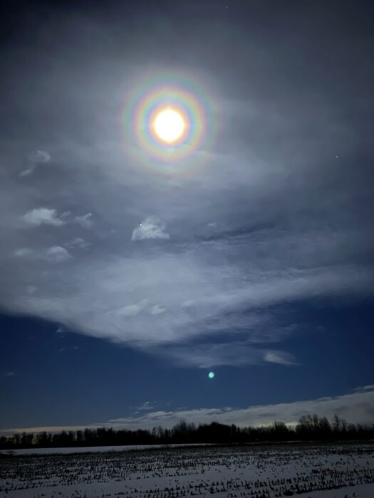 Generally darker than Stratus, Altostratus never produces halo phenomena, as Cirrostratus does. The sun showing through the cloud appears as if through ground glass.