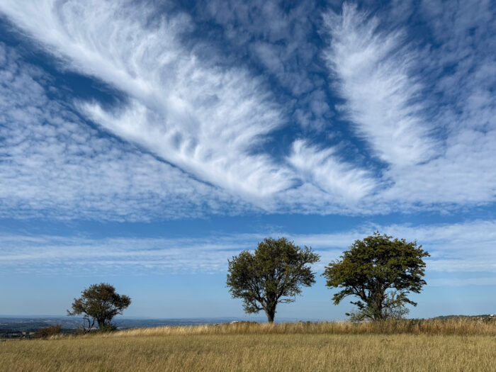 What starts the freezing? Sometimes it’s ice crystals falling into the cloud’s droplets from a higher Cirrus cloud. Most often, it is caused by an aircraft climbing or descending through the cloud to form a ‘distrail’. Low pressure in the vortices around the plane’s wings can cool the air enough to set off the freezing.