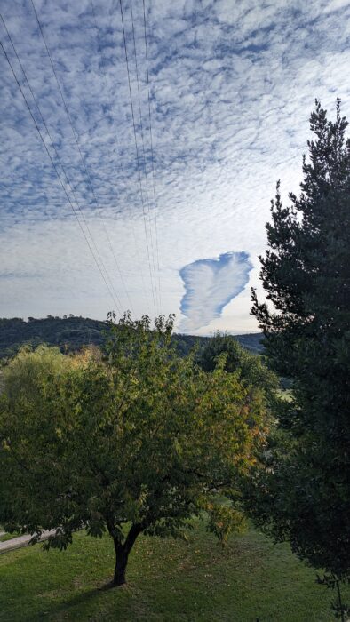 The fallstreak hole forms when one region of the cloud finally starts to freeze and begins a chain reaction. All the moisture from the supercooled droplets in the area rushes to join the ice crystals, which quickly grow big enough to fall below. A form of virga, the trail of ice crystals doesn’t tend to reach the ground, but evaporates before getting that far.