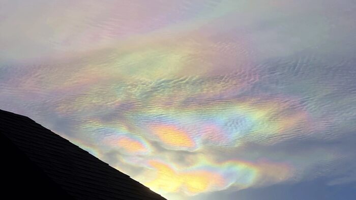 The best way to distinguish Cirrocumulus from lower Altocumulus is the size of the cloudlets, as well as the area of the sky covered by the layer as a whole. Being such a distance from the ground (often in the region of six miles (10km)), the cloudlets of Cirrocumulus appear so small that you often have to look carefully to notice the cloud’s grainy texture. For the cloud to be Cirrocumulus, these cloudlets must appear no larger than the width of a finger, held at arm’s length, when they are more than 30˚ above the horizon.