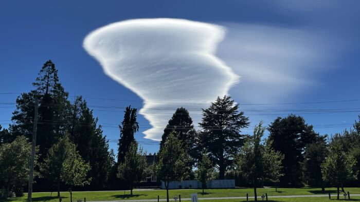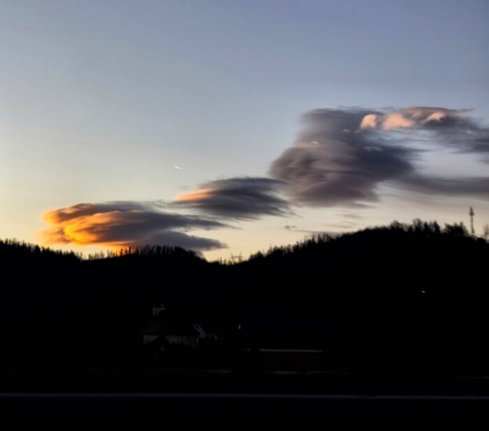 Lenticularis clouds are contenders for the Weirdest-Looking-Clouds-in-the-Sky awards. Their name is Latin for a lentil, on account of their very distinctive lens shapes. They often look remarkably like flying saucers. Presumably, when they were named, no one could think of the Latin word for ‘shaped like a UFO’.