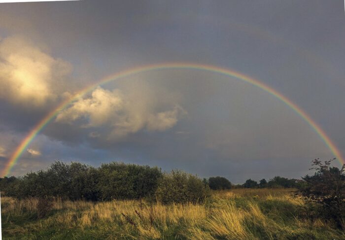 Besides the primary bow, a larger, fainter secondary bow can appear – the darker sky between the two being known as ‘Alexander’s dark band’. Within the primary bow, there are sometimes faint coloured fringes, called ‘supernumerary bows’.