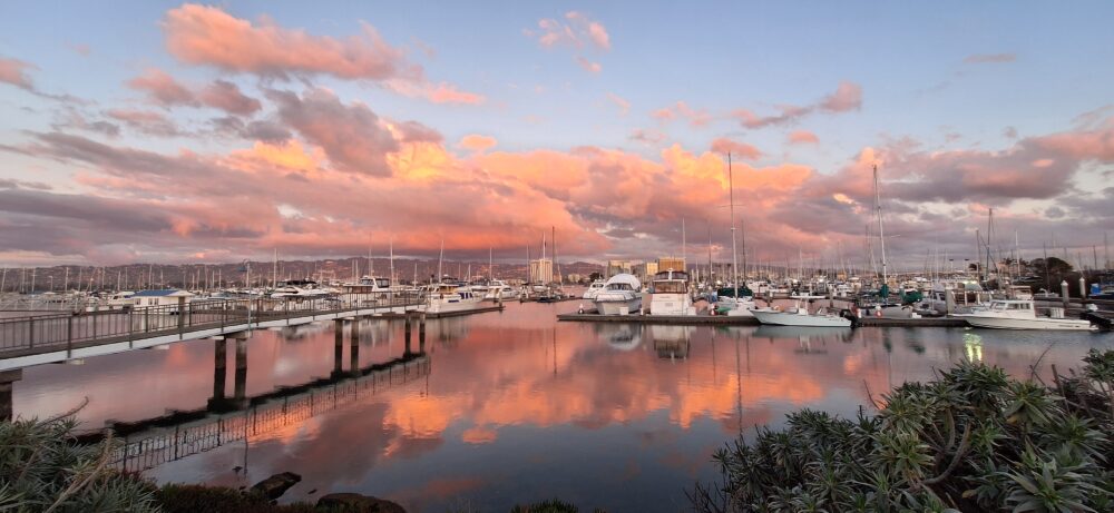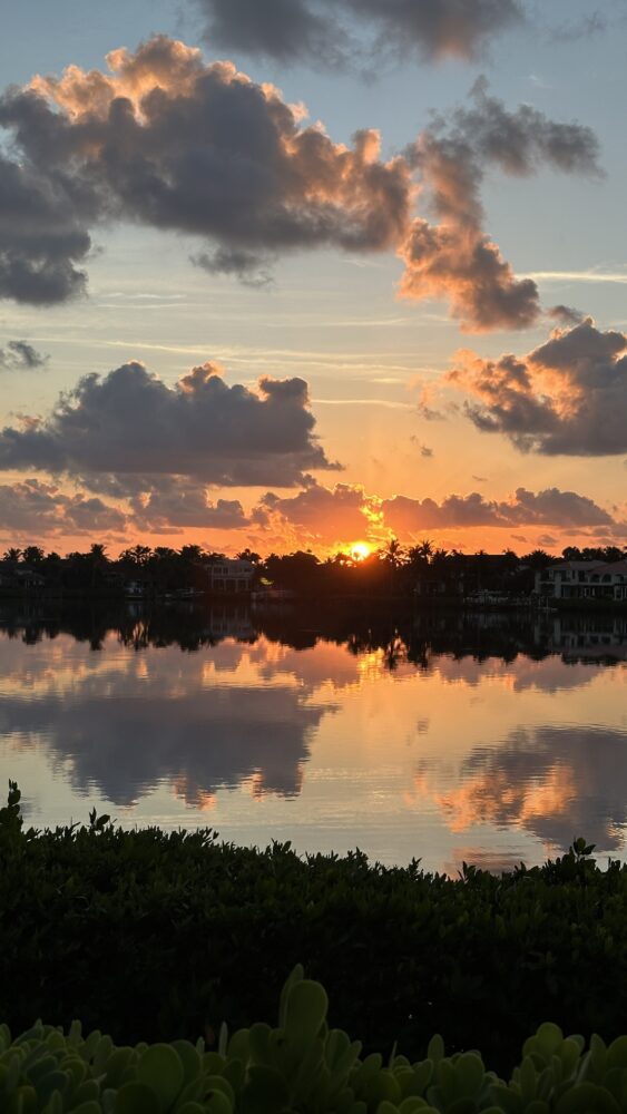 A reflective sunset spotted over Hutchinson Island, Florida, US