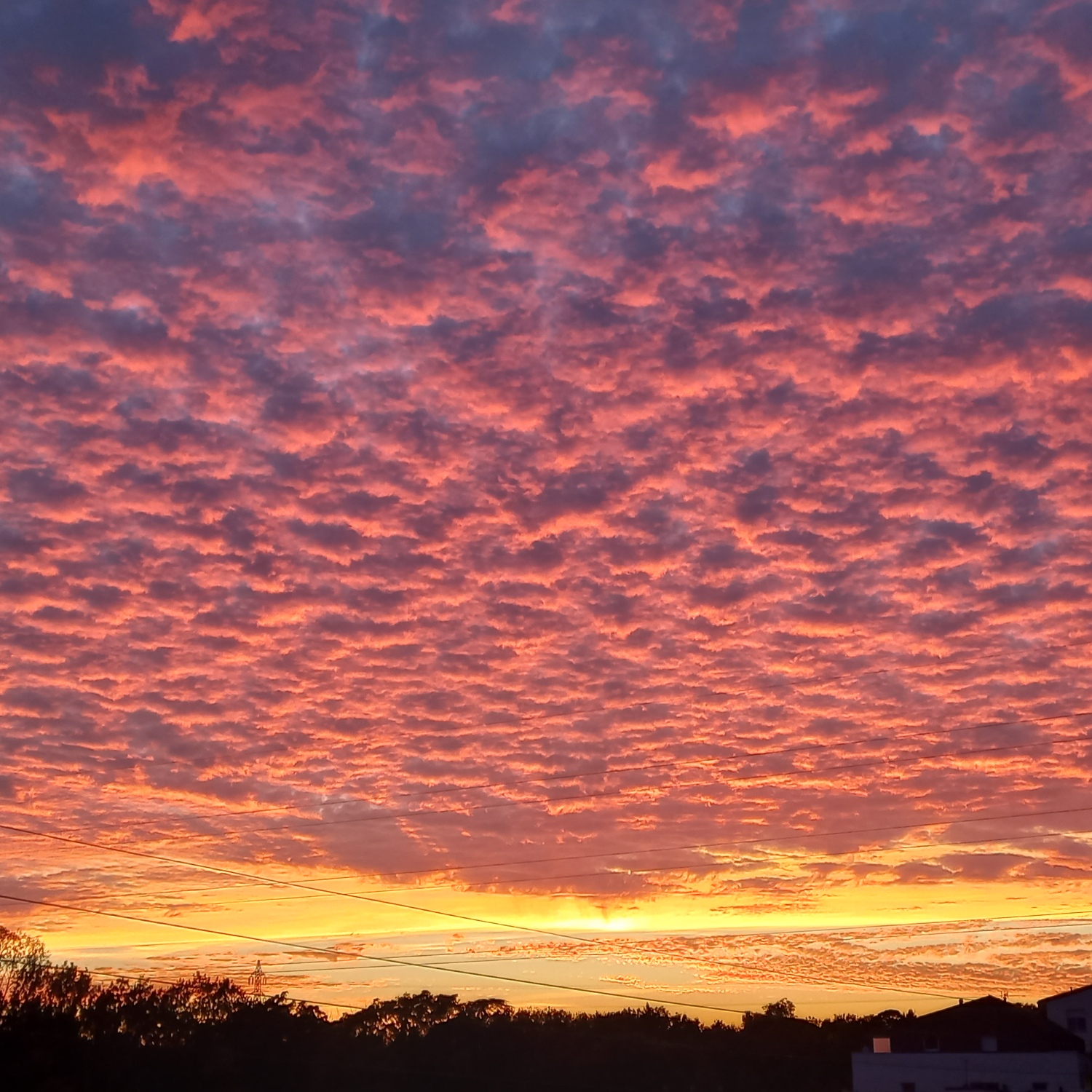 A stunning display of Altocumulus stratiformis undulatus spotted at sunset over Bend, Oregon, US