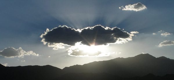 Cumulus and crepuscular rays spotted shortly after sunrise over Madison, Wisconsin, US