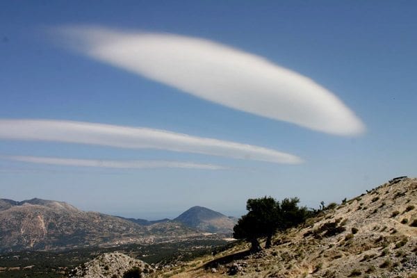 Signs of supercilium, an unofficial classification for a cloud formation that resembles eyebrow-like features, spotted off the San Francisco coast, approximately five miles from Stinson Beach, California, US