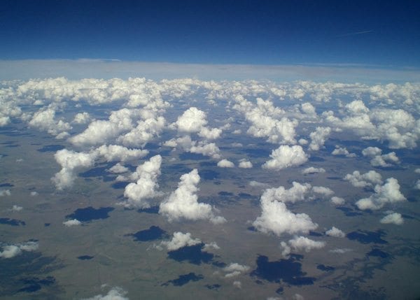 Migrating clouds, seen on a flight from Salt Lake City to Houston.