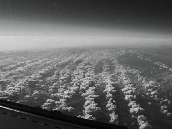Developing storms spotted on a flight over the Tasman Sea, between Australia and New Zealand
