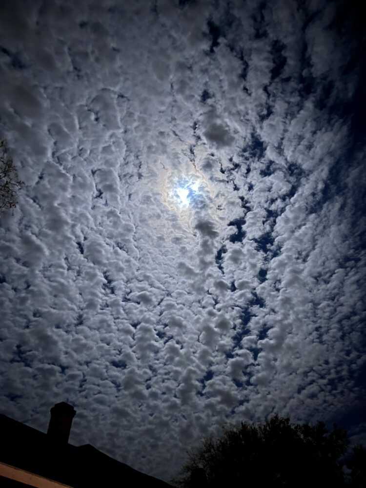 Altocumulus undulatus at night, spotted over Charlottesville, Virginia, US