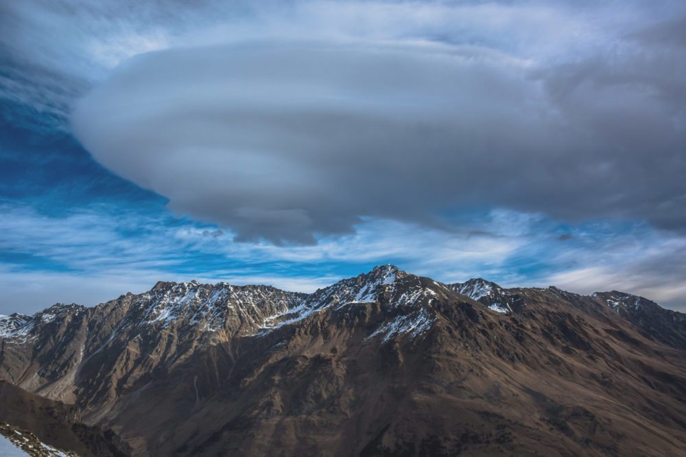 A classic UFO lenticularis over Mount Elbrus, Kabardino-Balkaria, Russia.