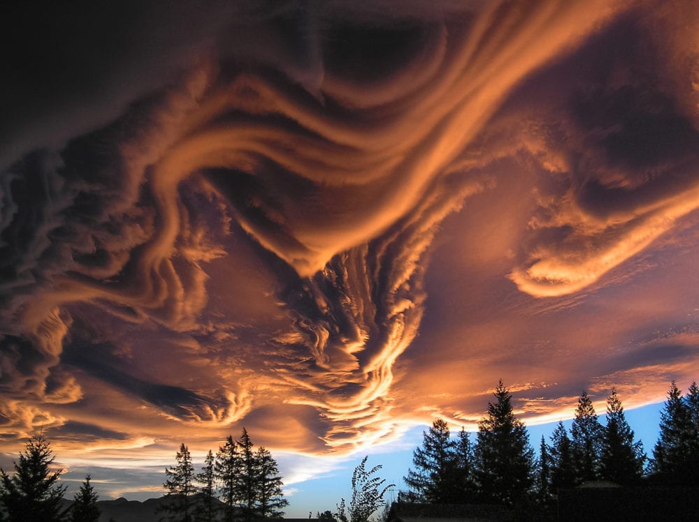 Explanation: What kind of clouds are these? Although their cause is presently unknown, such unusual atmospheric structures, as menacing as they might seem, do not appear to be harbingers of meteorological doom. Known informally as Undulatus asperatus clouds, they can be stunning in appearance, unusual in occurrence, are relatively unstudied, and have even been suggested as a new type of cloud. Whereas most low cloud decks are flat bottomed, asperatus clouds appear to have significant vertical structure underneath. Speculation therefore holds that asperatus clouds might be related to lenticular clouds that form near mountains, or mammatus clouds associated with thunderstorms, or perhaps a foehn wind — a type of dry downward wind that flows off mountains. Such a wind called the Canterbury arch streams toward the east coast of New Zealand’s South Island. The featured image, taken above Hanmer Springs in Canterbury, New Zealand, in 2005, shows great detail partly because sunlight illuminates the undulating clouds from the side.