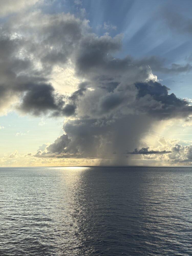 Crepuscular rays emanating from behind a storm near Taiwan