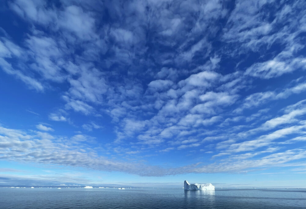 The iceberg, as Steven observes, appears to be pointing to the sky, 'look up there', spotted over Southern Greenland