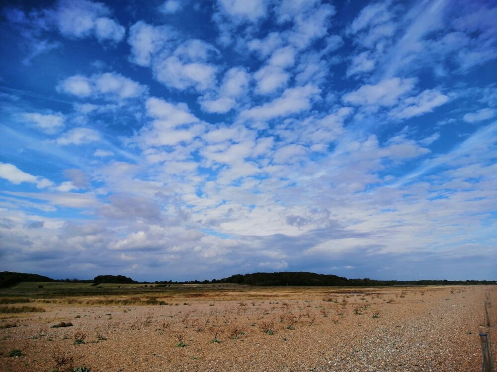 Layers of clouds spotted over Dunwich Beach, Suffolk, England