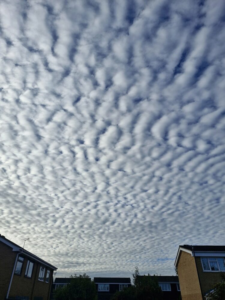 Altocumulus stratiformis undulatus, also known as a mackerel sky, was captured by Carl McGarrigle, who also remarked 'I forgot to iron the sky this morning'. This classic example was spotted over Preston, Lancashire, England.