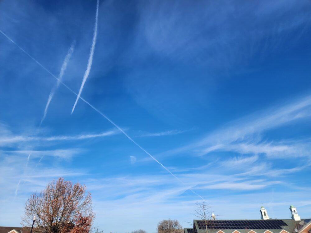 Contrails and Cirrostratus spotted over Newtown, Connecticut, US