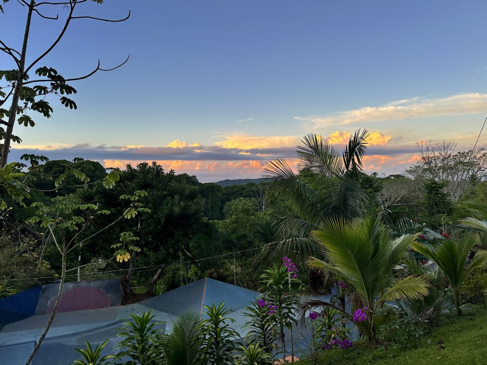 Sunrise over the Pacific Ocean with clouds that took on the resemblance of a skatepark in the foreground, spotted near Platanillo, Costa Rica