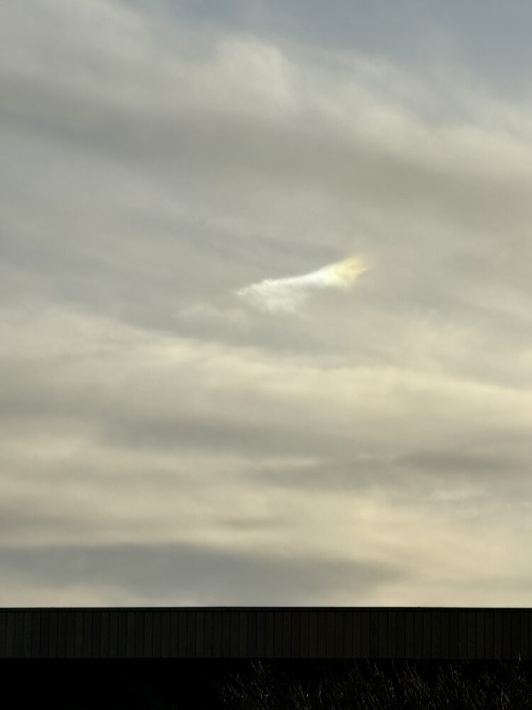 Signs of a Sun Dog (Parhelion) that Anne spotted and was able to take a photograph as it began to lose some of its colour, over Worsley, Salford, Manchester, England