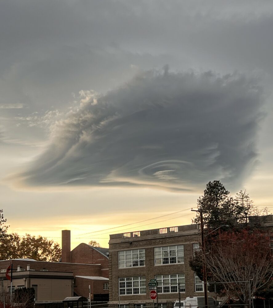 A uniquely shaped Altocumulus lenticularis spotted by Sean's wife, Angela, on Halloween evening over Bend, Oregon, US