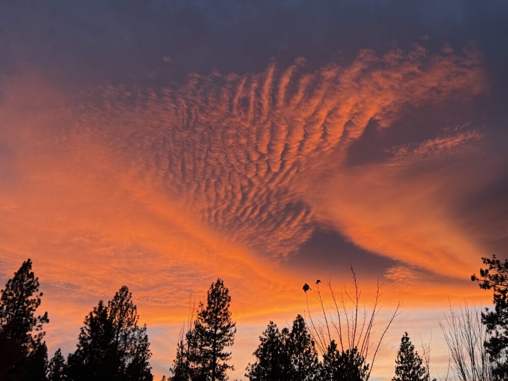 A stunning display of Altocumulus stratiformis undulatus spotted at sunset over Bend, Oregon, US