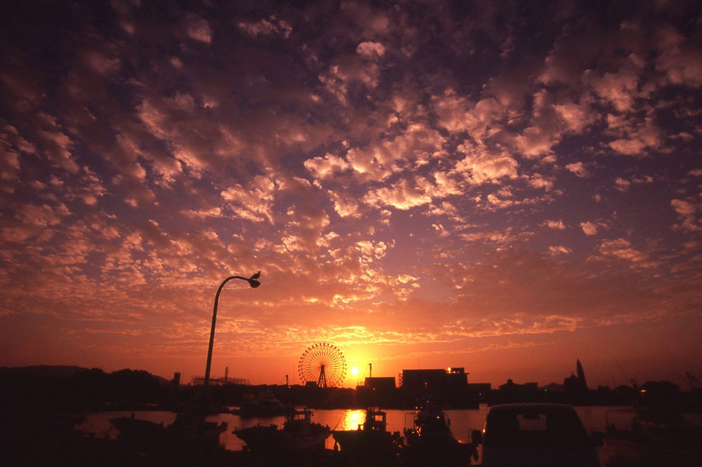 A Sunset over Meinohama Fishing Port , Fukuoka City, Japan.