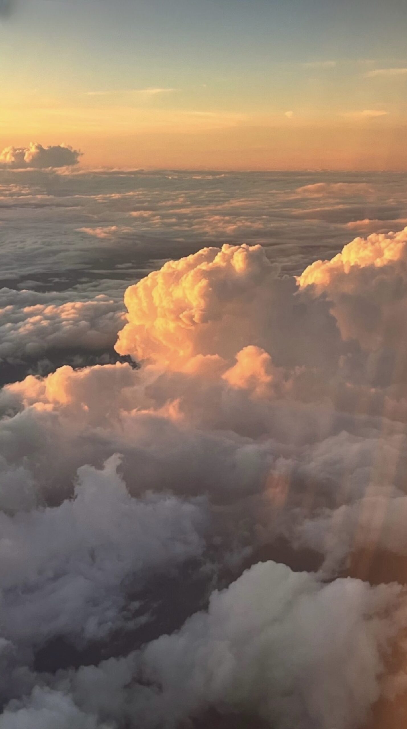 Shortly after sunrise, the view from above, sandwiched between layers of clouds during a flight from Glasgow to Stansted, spotted near Dilhorne, England