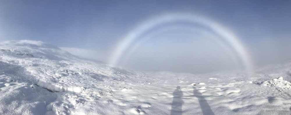 3 thoughts on “A fogbow spotted at the top of the Devil’s Staircase on the West Highland Way.”