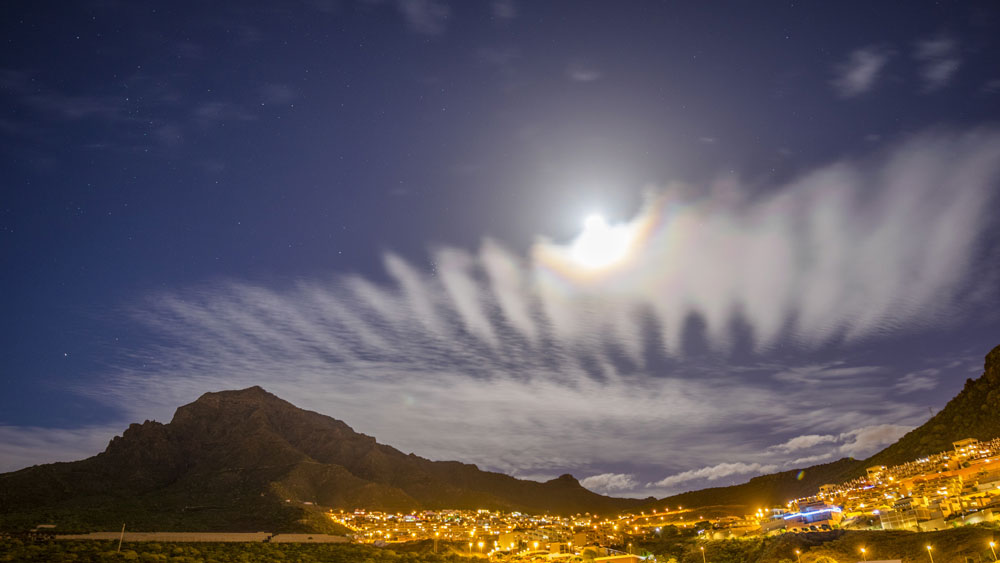 A full moon illuminates Roque del Conde, Tenerife.