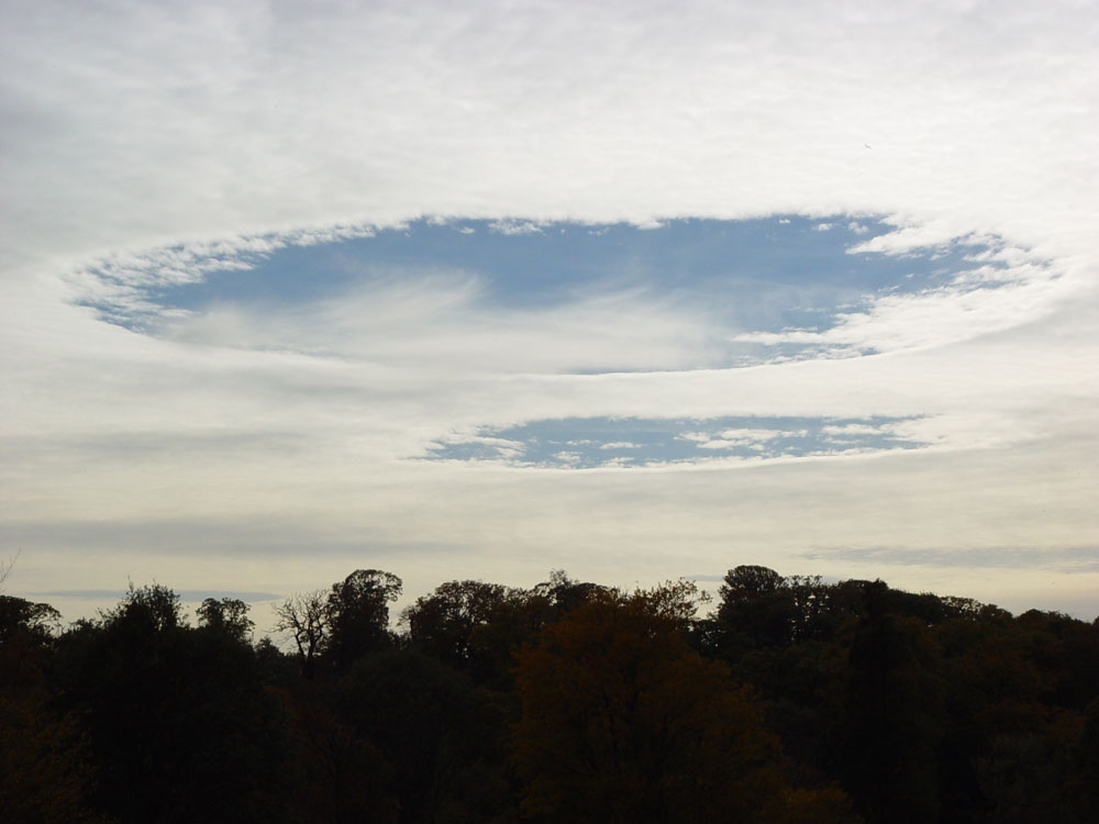 A pair of fallstreak holes over Hampstead Heath, London, UK.