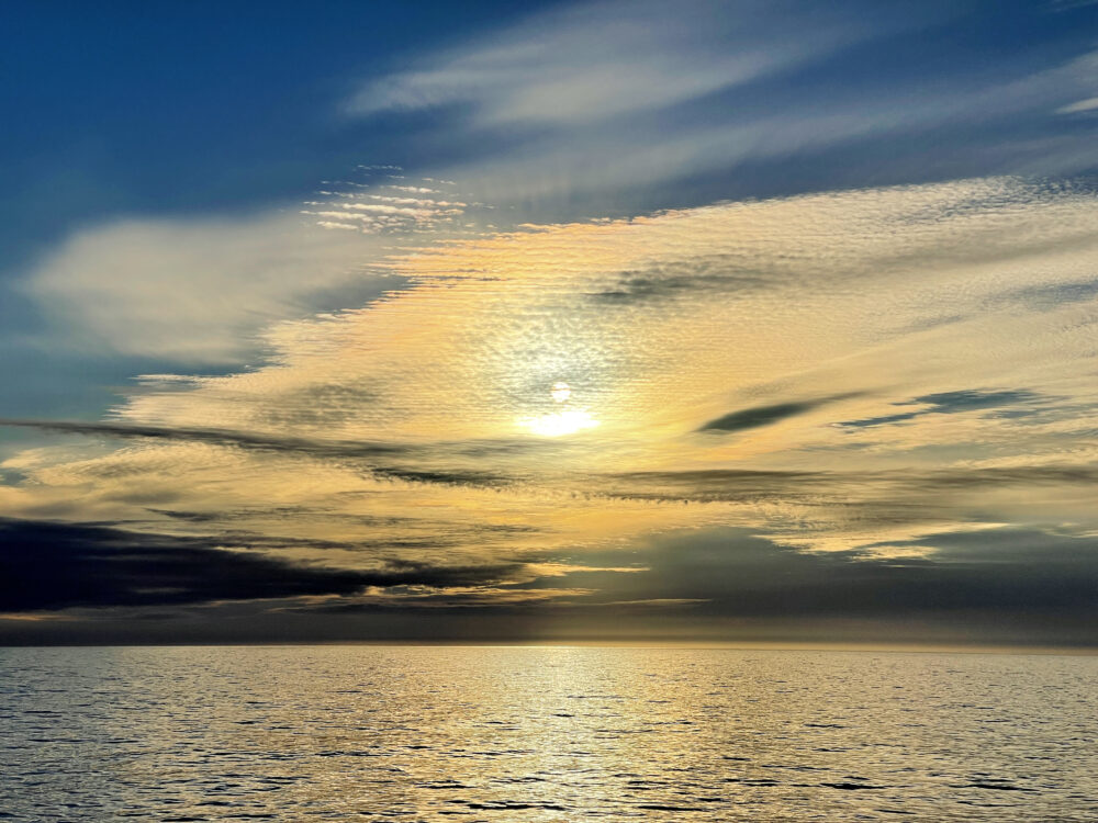 A translucent layer of Altocumulus providing a mesmerizing view during sunset over the Northeast Canadian High Arctic
