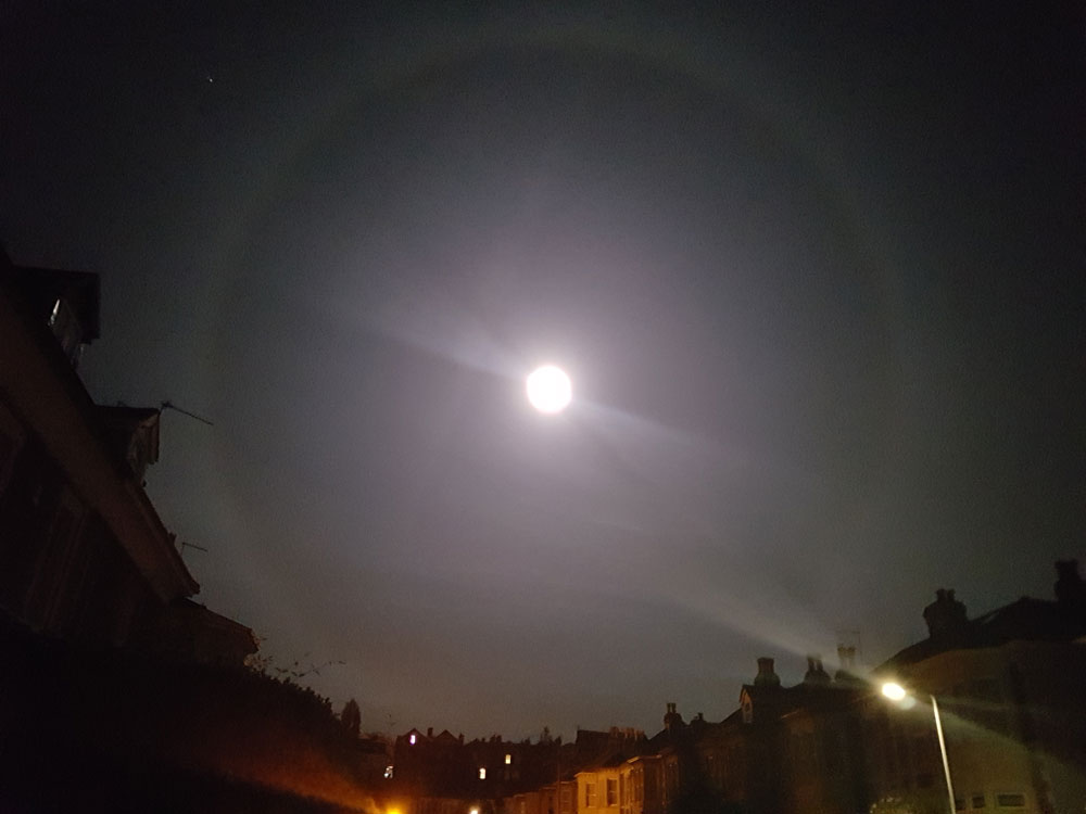 A lunar halo over Bristol, UK.