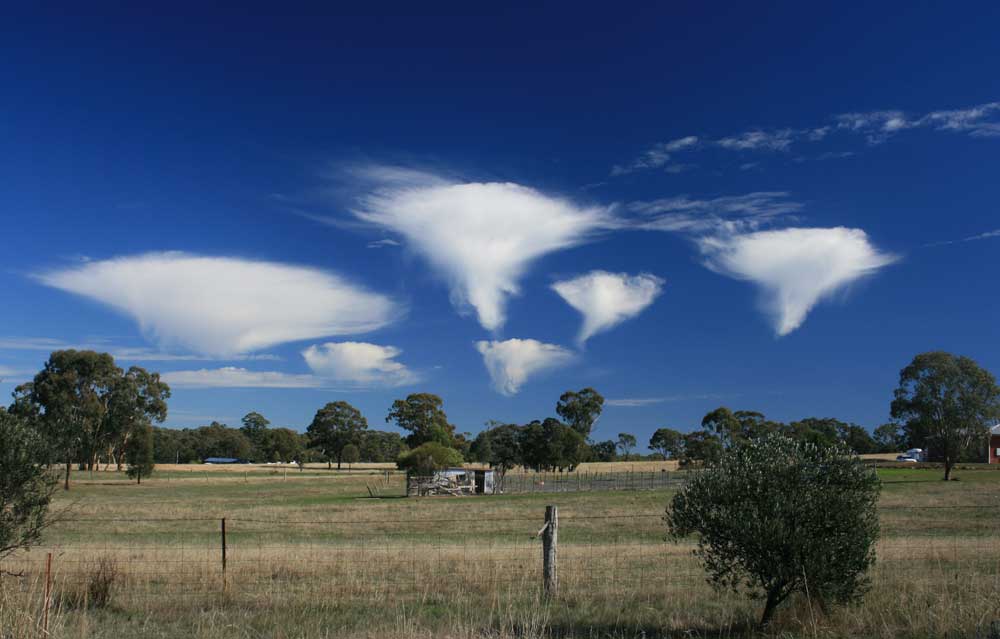 2 thoughts on “A shoal of Jellyfish AKA Altocumulus with virga, spotted over Talbot, Victoria, Australia.”