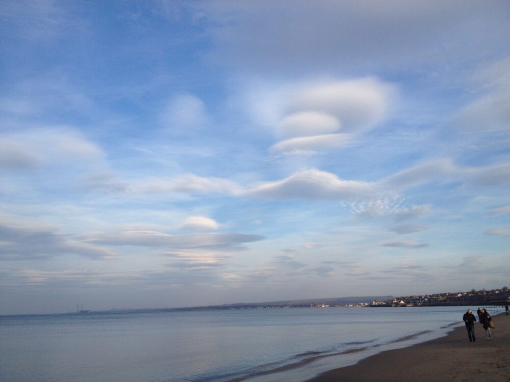 Multiple examples of Altocumulus lenticularis spotted near Portobello, Scotland
