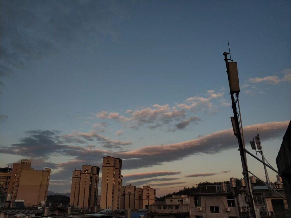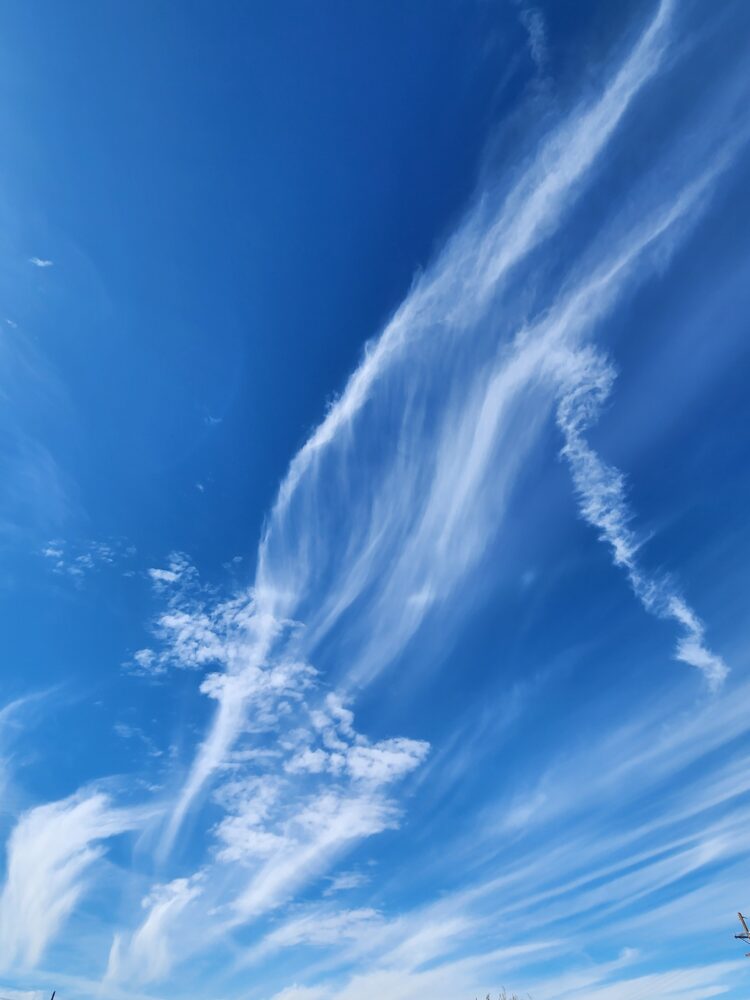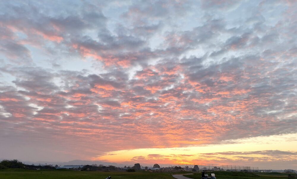 A dynamic sky with Cirrocumulus undulatus and vivid iridescence, spotted over Acadiana Regional Airport, New Iberia, Louisiana, US