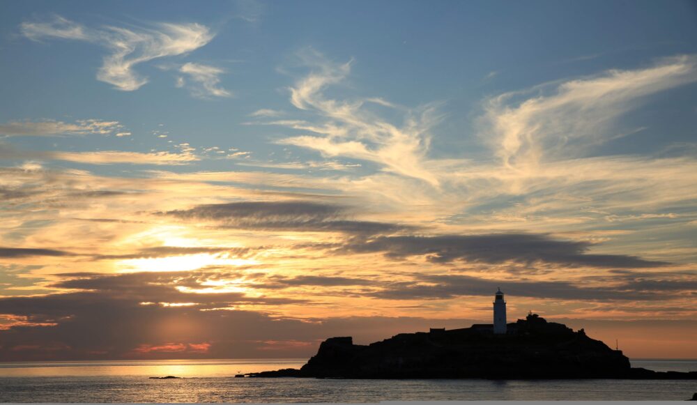 Sunset over Godrevy Lighthouse, Cornwall, England