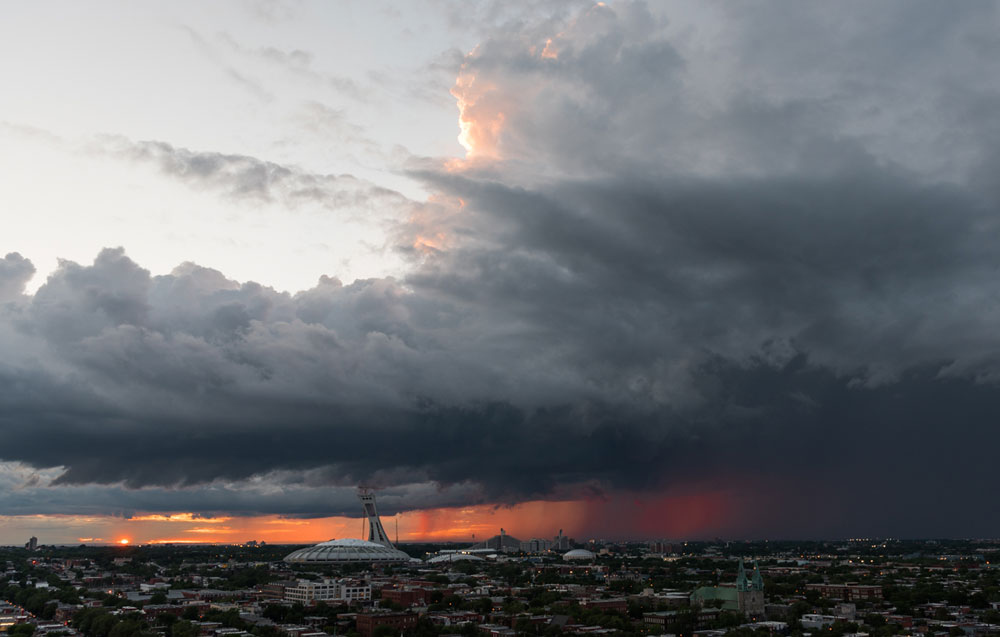 A storm system over Montreal, Quebec, Canada.