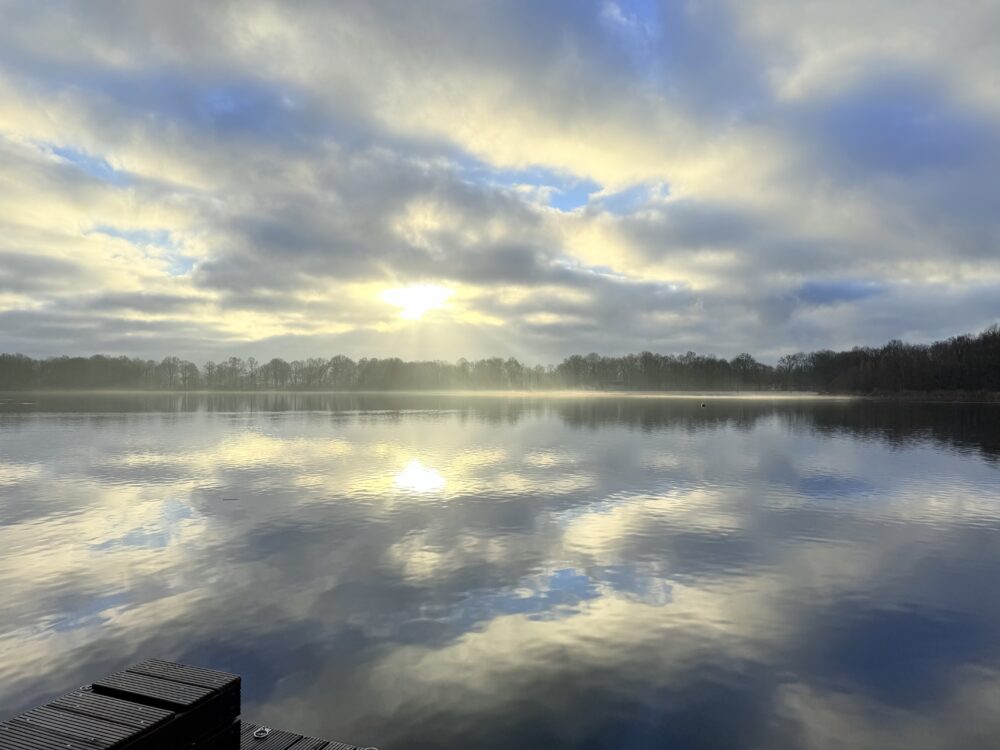 A crisp, radiant morning view over the lake called Oosterplas, 's-Hertogenbosch, The Netherlands