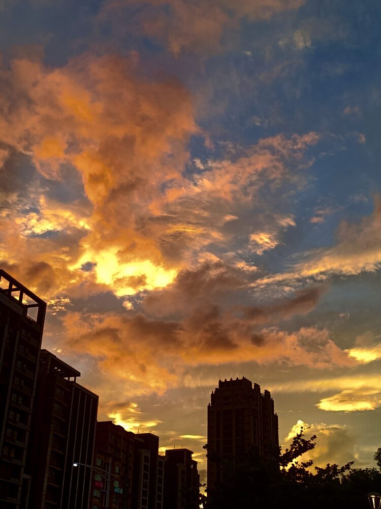 Sunset-illuminated cumulus over Ximending, Taipei, Taiwan
