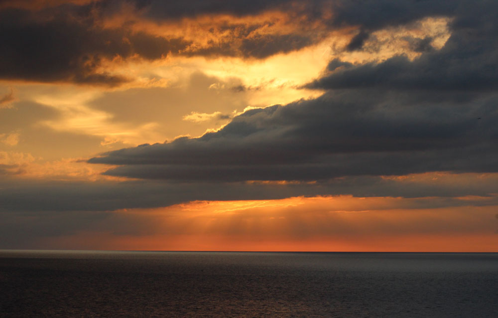 A sunset over Barcelona, Spain.