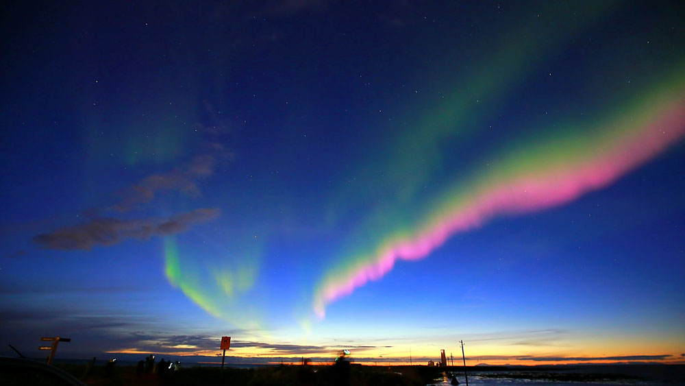 The Northern Lights/Aurora Borealis over Reykjavik, Iceland.