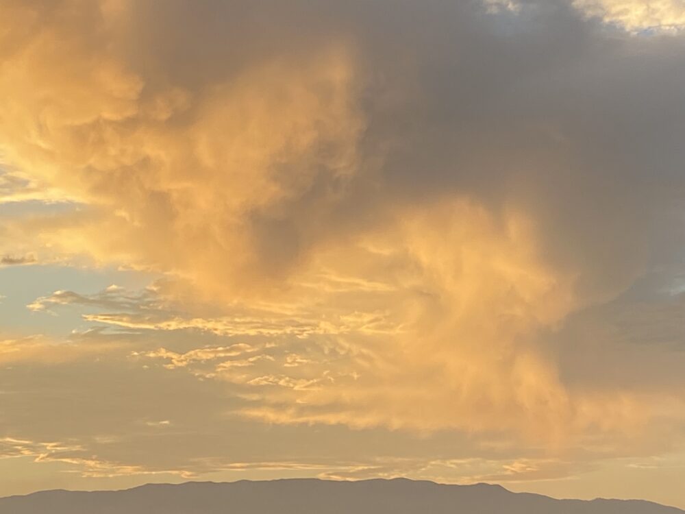 Anti-crepuscular rays, an optical phenomena caused by shadows cast by clouds or other objects, illuminated by sunlight, as spotted here when Joan was standing and facing east at sunset, with her back to the west, near San Diego, California, US