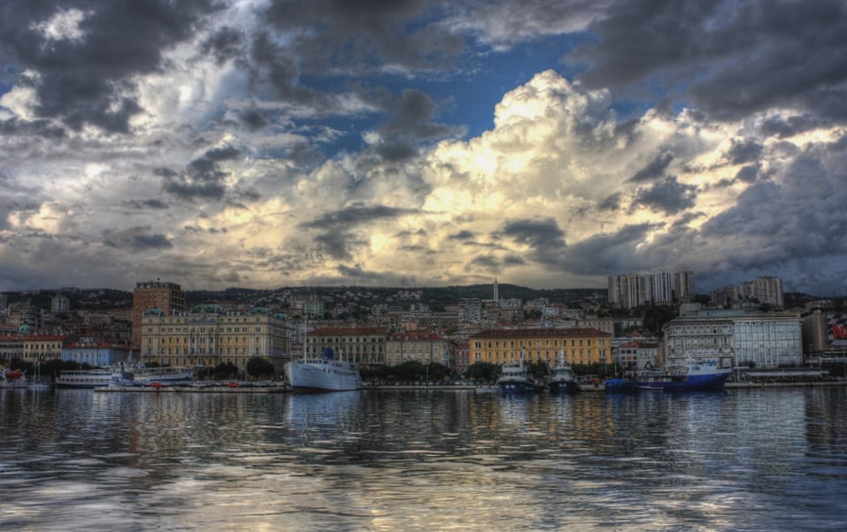 A lively cloudscape over the Port of Rijeka, Croatia.