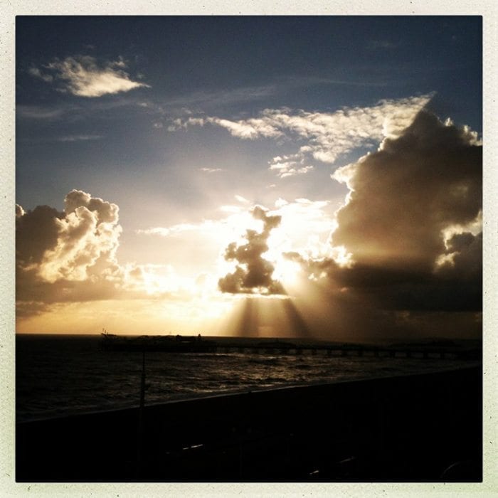 An illuminating image of a cloud that looks like the outline of the UK, spotted over Brighton, UK.