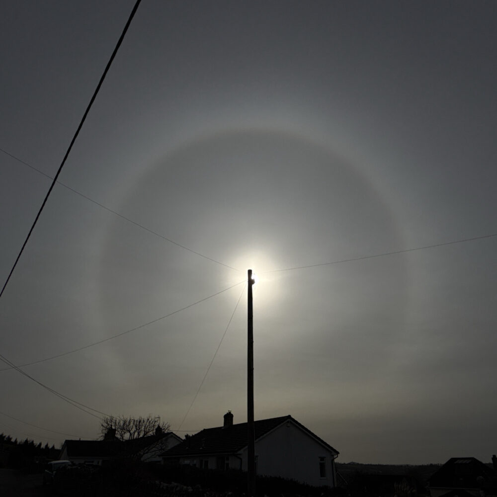 A lunar 22-degree halo spotted over Westbury sub Mendip, near Wells, Somerset, England