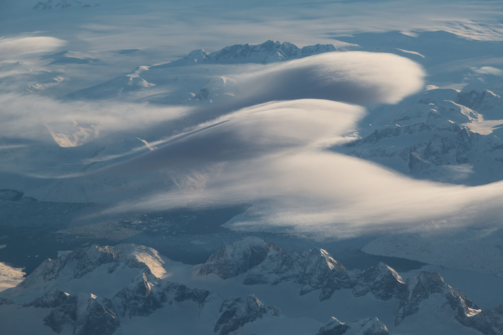 2 thoughts on “A view from the flight deck of lenticular formations over the east coast of Greenland.”