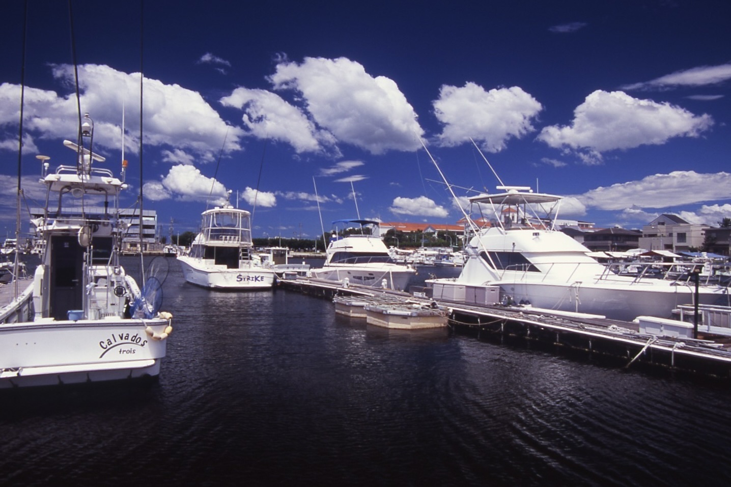 Cumulus clouds spotted over Meinohama Fishing Port, Fukuoka City, Japan